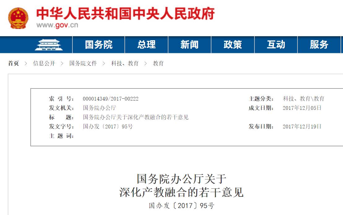 政策红利!中教子基金发布28天... 2017-12-202017年12月19日,国务院办公厅印发《关于深化产教融合的...